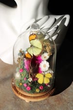 Our collection features the beautiful Common Grass Yellow butterfly and a Common Orange Tip butterfly, along with a captivating Wolf spider surrounded by moss and mixed floral arrangements. Additionally, we have stunning pink and black geodes available.